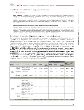 31/100 M.N.); monto que representa el 98% de las metas de gasto programadas, disponiendo