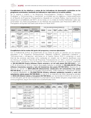 INFORME INDIVIDUAL CUENTA PÚBLICA MUNICIPAL 2022 Cumplimiento de los objetivos y metas de los indicadores de desempeño contenidos en los