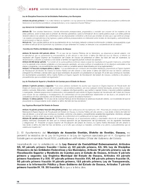 y obligaciones: III.- Presentar al órgano Superior de Fiscalización del Estado de Oaxaca, la Cuenta Pública Municipal del año anterior a