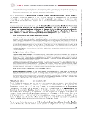 o municipales, deberán proporcionar la información y documentación que solicite el Órgano Superior de Fiscalización del Estado de Oaxaca INFORME INDIVIDUAL CUENTA PÚBLICA MUNICIPAL 2022