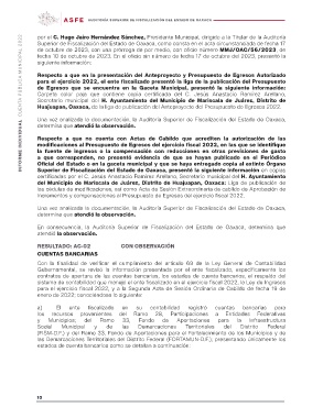 INFORME INDIVIDUAL CUENTA PÚBLICA MUNICIPAL 2022 por el C. Hugo Jairo Hernández Sánchez, Presidente Municipal, dirigido a la Titular de la Auditoría