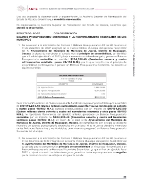 Una vez analizada la documentación y argumentación, la Auditoría Superior de Fiscalización del INFORME INDIVIDUAL CUENTA PÚBLICA MUNICIPAL 2022