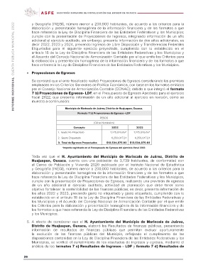 cumple con la presentación de Proyecciones de Egresos, realizando una previsión de egresos