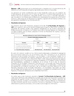 Contable (CONAC), para tal efecto, presentó el formato de Resultados de Egresos, integrando