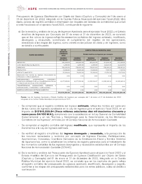 INFORME INDIVIDUAL CUENTA PÚBLICA MUNICIPAL 2022 Presupuesto de Egresos Clasificación por Objeto del Gasto (Capítulo y Concepto) del 1 de enero al