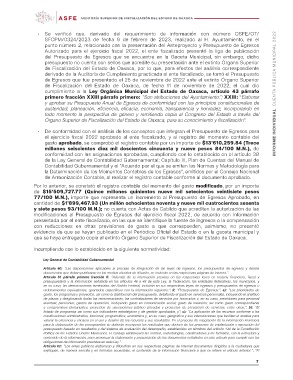 de Egresos que fue presentado el 25 de noviembre de 2022 ante el extinto Órgano Superior