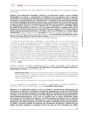 Fiscalizable no presentó a requerimiento la Iniciativa de Ley de Ingresos para el ejercicio