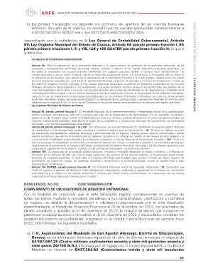 b) La Entidad Fiscalizable no presentó los contratos de apertura de las cuentas bancarias INFORME INDIVIDUAL CUENTA PÚBLICA MUNICIPAL 2022