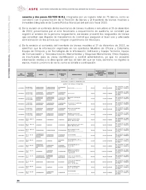 c) De la revisión al contenido del inventario de bienes muebles al 31 de diciembre de 2022, se