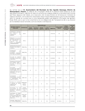 INFORME INDIVIDUAL CUENTA PÚBLICA MUNICIPAL 2022 Se verificó que el H. Ayuntamiento del Municipio de San Agustín Atenango, Distrito de
