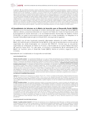 (FISM-DF), se cotejó la información proporcionada por el ente fiscalizado y la integrada en la