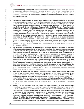 obtención de deuda pública municipal; f) documentación comprobatoria en original que