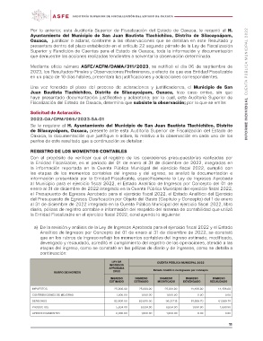 Por lo anterior, esta Auditoría Superior de Fiscalización del Estado de Oaxaca, le requirió al H. INFORME INDIVIDUAL CUENTA PÚBLICA MUNICIPAL 2022