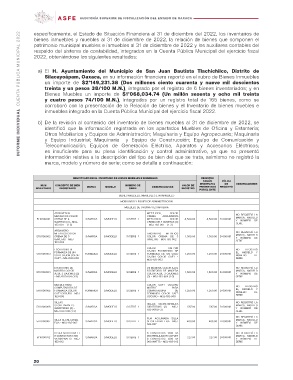 INFORME INDIVIDUAL CUENTA PÚBLICA MUNICIPAL 2022 específicamente, el Estado de Situación Financiera al 31 de diciembre del 2022, los inventarios de