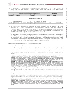 d) De la verificación a la información de los bienes muebles contenida en el inventario presentado INFORME INDIVIDUAL CUENTA PÚBLICA MUNICIPAL 2022