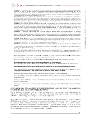 cumplimiento a las obligaciones de transparencia de la Ley de Disciplina Financiera de las Entidades
