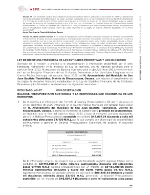 Artículo 75: “Los municipios enviarán a las entidades federativas información sobre la aplicación de los recursos del Fondo de Aportaciones INFORME INDIVIDUAL CUENTA PÚBLICA MUNICIPAL 2022