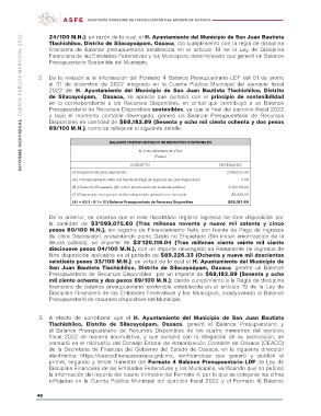 INFORME INDIVIDUAL CUENTA PÚBLICA MUNICIPAL 2022 24/100 M.N.); en razón de lo cual, el H. Ayuntamiento del Municipio de San Juan Bautista