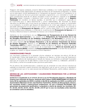 y consideraciones que en su caso proporcione la Entidad Fiscalizable, podrán ratificar, solventar y