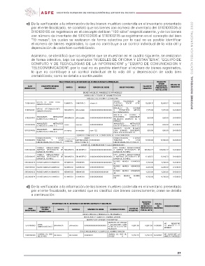 c) De la verificación a la información de los bienes muebles contenida en el inventario presentado INFORME INDIVIDUAL CUENTA PÚBLICA MUNICIPAL 2022