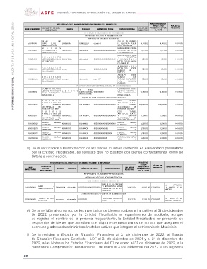 e) De la revisión al contenido de los inventarios de bienes muebles e inmuebles al 31 de diciembre
