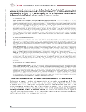 Gubernamental, Artículos 71, 72 párrafo primero, 75; Ley de Coordinación Fiscal del Estado
