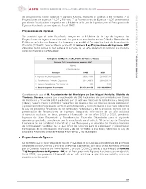 de proyecciones sobre ingresos y egresos futuros, mediante el análisis a los formatos 7 a) INFORME INDIVIDUAL CUENTA PÚBLICA MUNICIPAL 2022