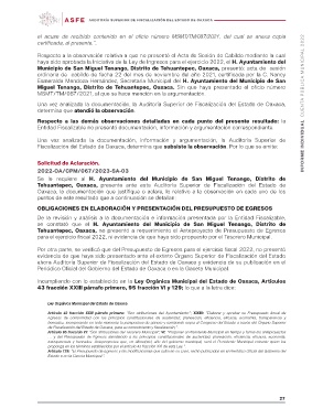 AUDITORÍA SUPERIOR DE FISCALIZACIÓN DEL ESTADO DE OAXACA INFORME INDIVIDUAL CUENTA PÚBLICA MUNICIPAL 2022
