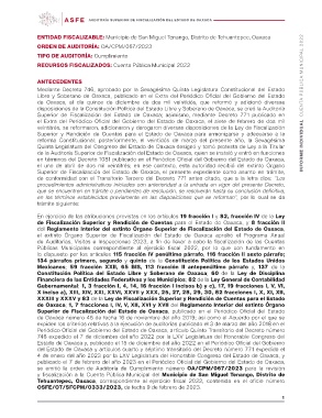 AUDITORÍA SUPERIOR DE FISCALIZACIÓN DEL ESTADO DE OAXACA INFORME INDIVIDUAL CUENTA PÚBLICA MUNICIPAL 2022
