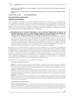 trimestre al Congreso del Estado a través del Órgano Superior de Fiscalización del Estado de Oaxaca, la información financiera que a
