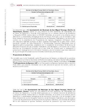 cumple con la presentación de Proyecciones de Egresos, realizando una previsión de egresos