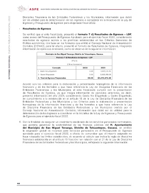 INFORME INDIVIDUAL CUENTA PÚBLICA MUNICIPAL 2022 Disciplina Financiera de las Entidades Federativas y los Municipios; información que debió