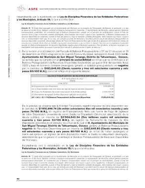 INFORME INDIVIDUAL CUENTA PÚBLICA MUNICIPAL 2022 Incumpliendo con lo establecido en la Ley de Disciplina Financiera de las Entidades Federativas