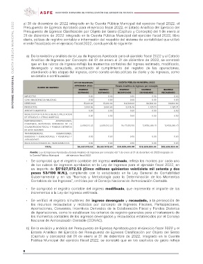 a) De la revisión y análisis de la Ley de Ingresos Aprobada para el ejercicio fiscal 2022 y el Estado