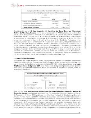 Municipios; cumple con la presentación de Proyecciones de Ingresos, integrando información