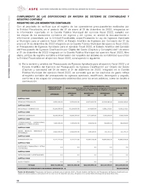 enero al 31 de diciembre de 2022 integrado en la Cuenta Pública Municipal del ejercicio fiscal 2022,