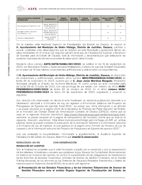 Por lo anterior, esta Auditoría Superior de Fiscalización del Estado de Oaxaca, le requirió al