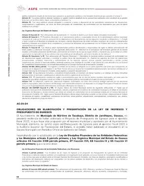 y los Municipios artículo 5 párrafo primero; y Ley Orgánica Municipal del Estado de Oaxaca