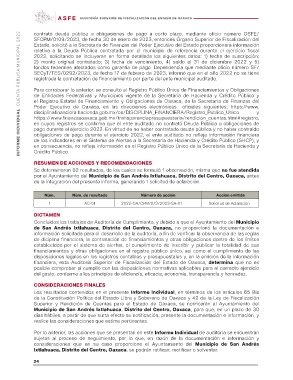 INFORME INDIVIDUAL CUENTA PÚBLICA MUNICIPAL 2022 contrató deuda pública u obligaciones de pago a corto plazo, mediante oficio número OSFE/
