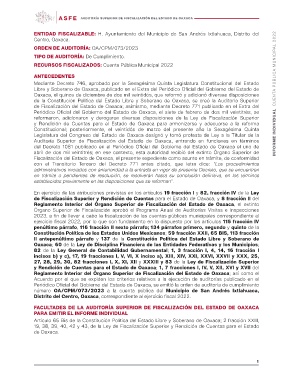 AUDITORÍA SUPERIOR DE FISCALIZACIÓN DEL ESTADO DE OAXACA INFORME INDIVIDUAL CUENTA PÚBLICA MUNICIPAL 2022