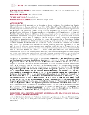 AUDITORÍA SUPERIOR DE FISCALIZACIÓN DEL ESTADO DE OAXACA INFORME INDIVIDUAL CUENTA PÚBLICA MUNICIPAL 2022