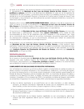En razón de lo anterior, esta Auditoría Superior de Fiscalización del Estado de Oaxaca, le requirió