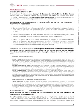 Solicitud de aclaración: INFORME INDIVIDUAL CUENTA PÚBLICA MUNICIPAL 2022