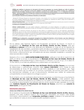 INFORME INDIVIDUAL CUENTA PÚBLICA MUNICIPAL 2022 AUDITORÍA SUPERIOR DE FISCALIZACIÓN DEL ESTADO DE OAXACA