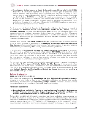 Por lo anterior, esta Auditoría Superior de Fiscalización del Estado de Oaxaca, le requirió al