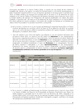 a) De la revisión y análisis de la Ley de Ingresos aprobada para el ejercicio fiscal 2022 y el Estado