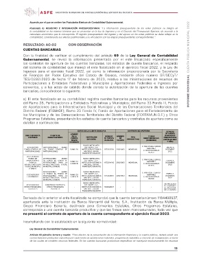 Derivado de lo anterior el ente fiscalizado no comprobó que la cuenta bancaria número 1184498937,
