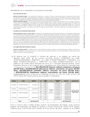 Artículo 69 párrafos tercero, cuarto y quinto: “Para efectos de la presentación de la información financiera y la cuenta pública, deberá existir