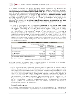 disposición aplicados en el período; en virtud de lo cual el H. Ayuntamiento del Municipio de Villa