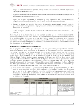 • Integra en forma automática el ejercicio presupuestario con la operación contable, a partir de la INFORME INDIVIDUAL CUENTA PÚBLICA MUNICIPAL 2022
